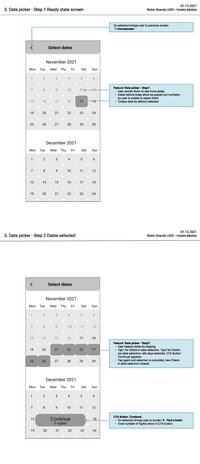 A calendar for selecting dates should be quick to handle. Check in and out dates preferably selected in one go instead of filling in information for both dates to prevent friction while booking.