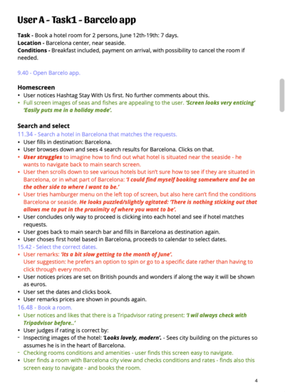 For this assignment I needed to watch the recordings of two mobile usability tests and take detailed notes while focussing on the goals, behaviours, context, positive interactions and painpoints of the users. This to realise the importance of conducting usability tests, and to create a bank of insights for all future projects.