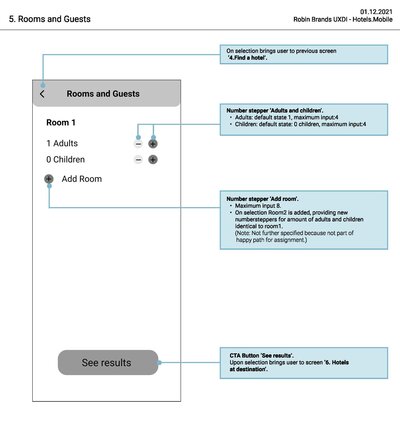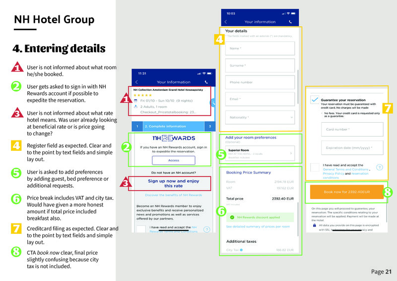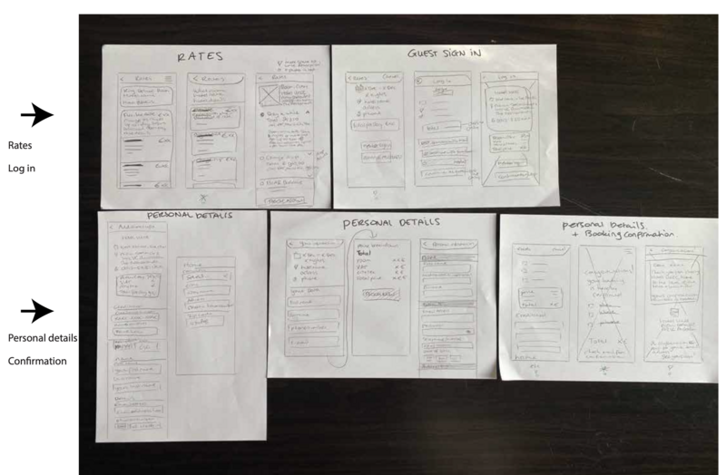 Orientation - Homescreen - Search results - Select hotel - Select room - Select rates - Enter details.