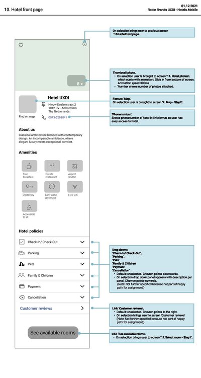 9. Wireframe | Getting ready for my developers - annotating my designs.