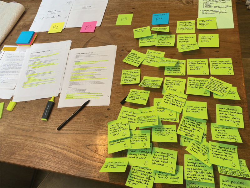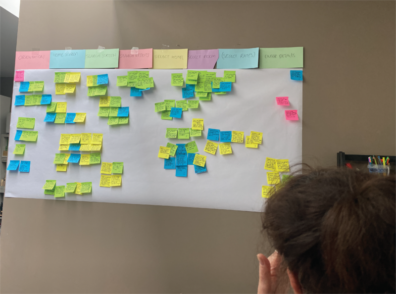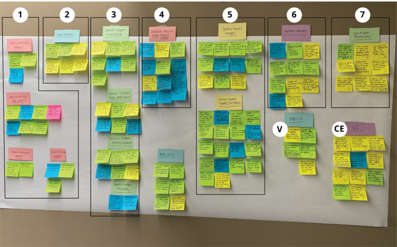 Then we started to organise them by making groups. During which we realised groups could be made according to specific user touchpoints while using an app to book a hotel. We discovered user touchpoints: