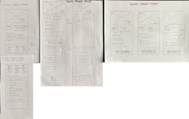 Looking back, I think the sketches look a bit messy (especially for stakeholders) and still lack some useful information. In hindsight I better understand the importance of the accuracy of the solutions and copy used in the solutions. The better you think about the solutions while sketching by hand the easier it is to build them in Figma later on.