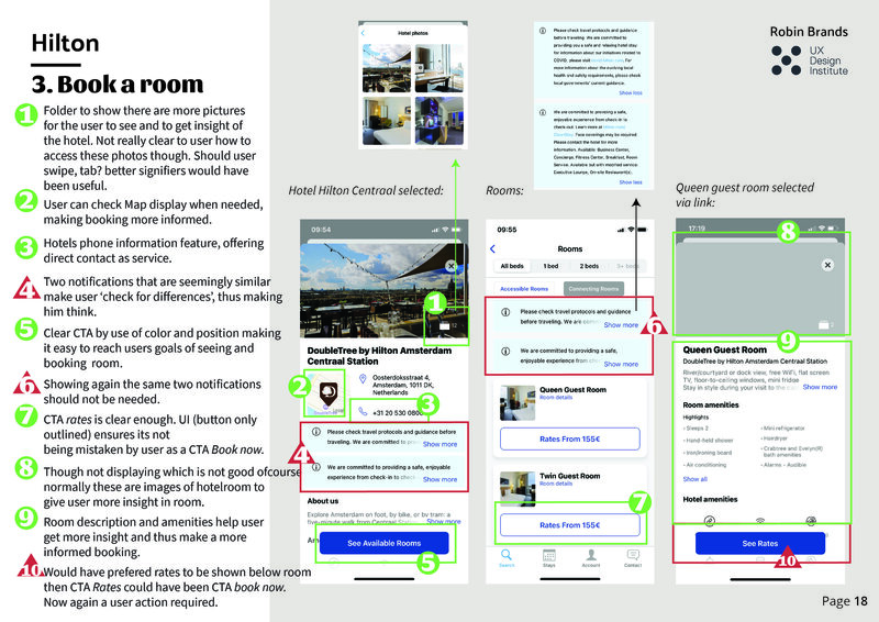 I asked a user to perform the task of booking a hotel room under a specific set of conditions to see how her experience and journey would be on both mobile applications of the hotel chain Hilton Hotels and booking aggregator Booking.com.
